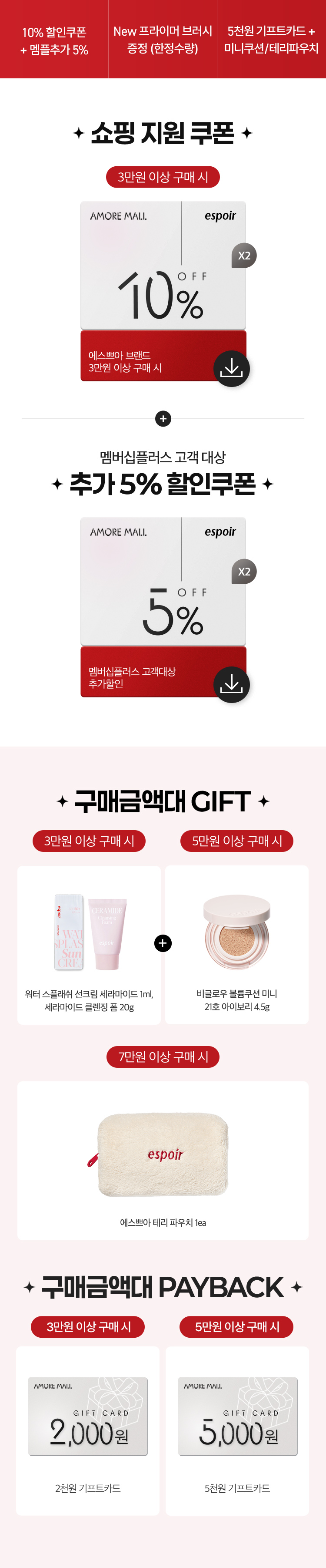 • 뷰티포인트 전액 결제 시 스페셜 사은품과 기프트카드 증정 대상에서 제외됩니다.